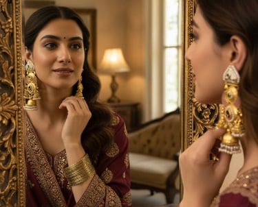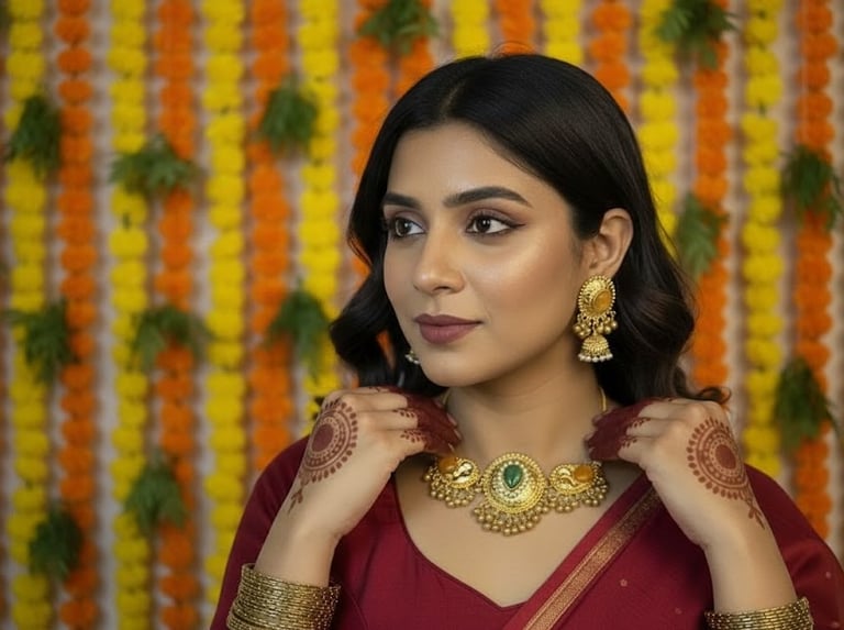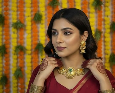 Festive glam that captures the joy of celebration with radiant elegance. Inspired by tradition and crafted with a modern touch for standout moments. Perfectly designed to make every festive occasion shine with effortless charm.